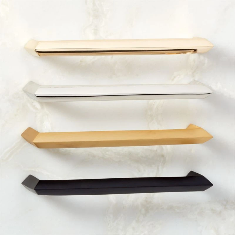Designed by Barcelona-based Mermelada Estudio, these unique beveled handles bring sharp lines and a touch of modern luxury to any interior. Solid brass is unlacquered for a living finish that will patina beautifully over time. CB2 exclusive.
