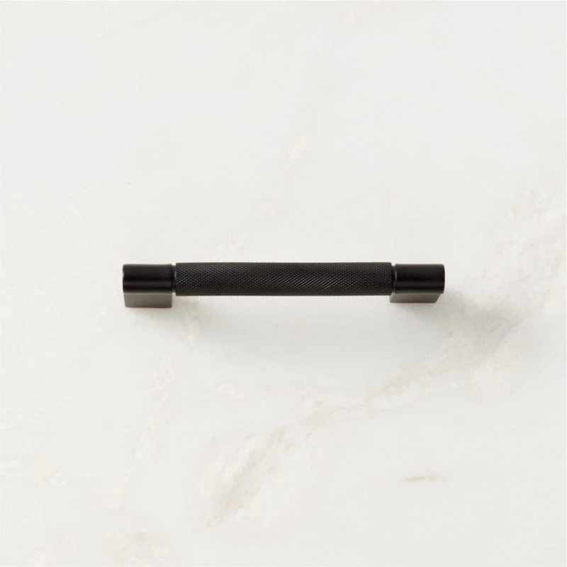 Designed by Barcelona-based Mermelada Estudio, textured brass handle brings a modern, industrial aesthetic to doors and drawers. Pair with the Nicolo knobs and appliance pulls for an upscale look seen in custom-designed kitchens. CB2 exclusive.