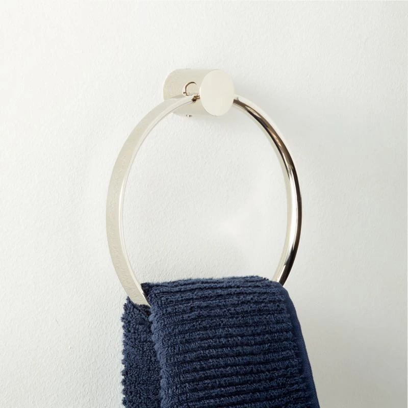 Designed by Barcelona-based Mermelada Estudio, sleek towel ring elevates the bath with its clean, modern design. Collection also includes a toilet paper holder. CB2 exclusive.