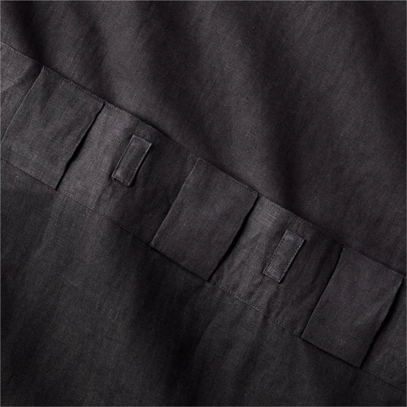 Light-filtering linen drapery is woven from natural flax grown in Europe. Full-length in black. Hangs beautifully with back tabs, rod pocket or drapery hooks. CB2 exclusive.