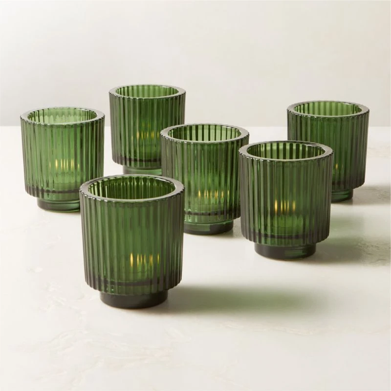 Ezra Green Glass Tealight Candle Holders Set Of 6