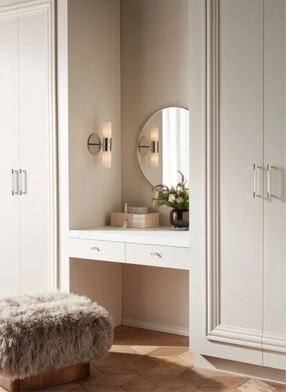 Framed by polished nickel hardware, crystal adds a feminine touch to this elegant handle. Pairs with the Flynn knobs for a cohesive look. CB2 exclusive.