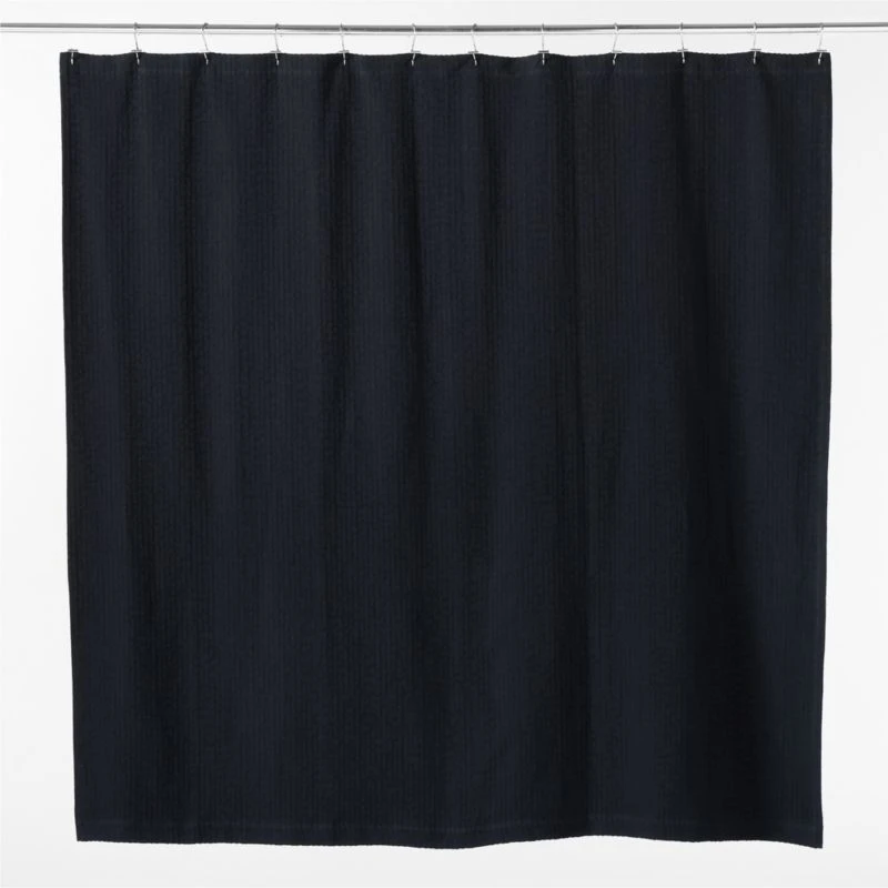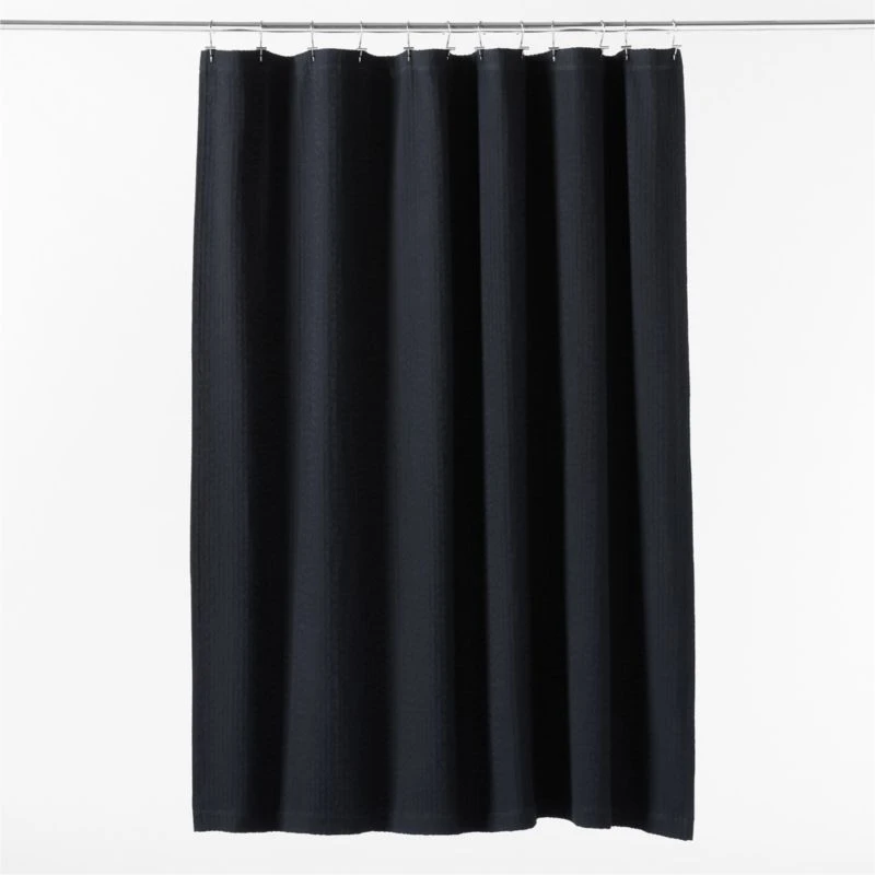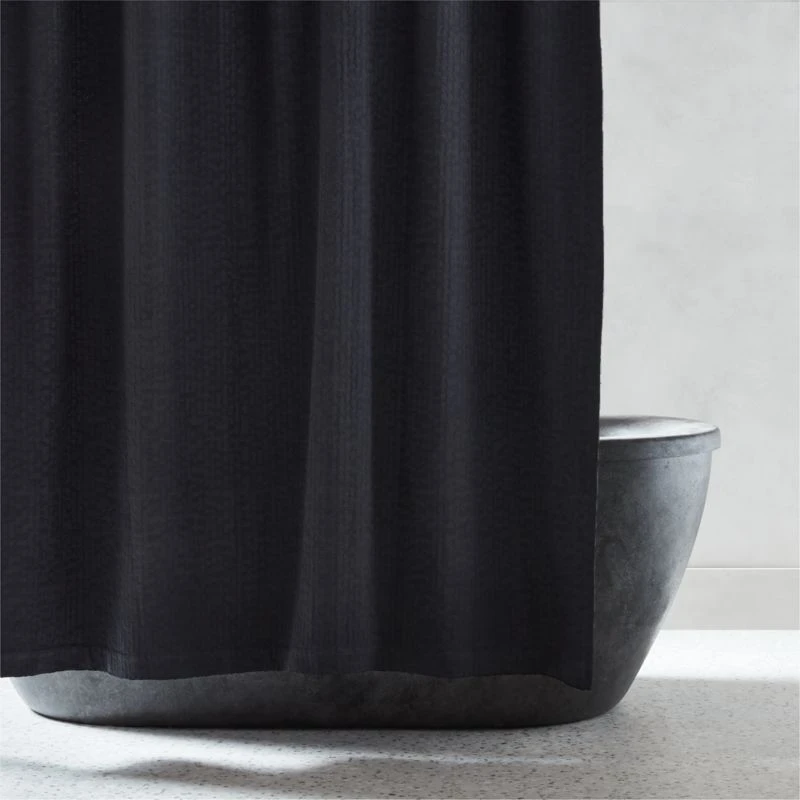 Woven from premium organic cotton, black shower curtain is casually elegant. The naturally soft weave is textured with a subtle high-low pattern. CB2 exclusive.