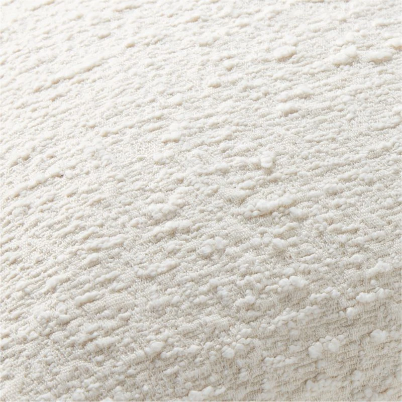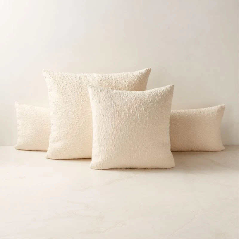 Ivory boucle pillow is rich in texture and adds visual interest to sofas, beds and accent chairs alike. CB2 pillows include a pillow insert in your choice of feather-down or down alternative. CB2 exclusive.