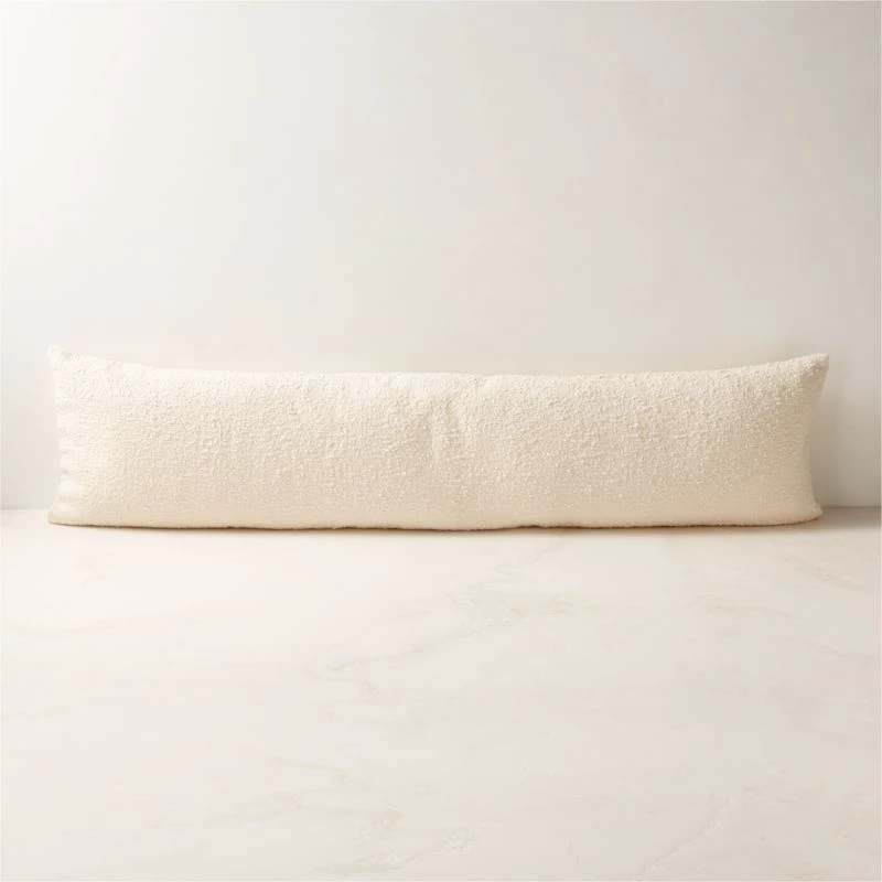 Ivory White Boucle Throw Pillow With Down-Alternative Insert 48”x12”