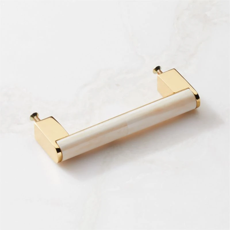 Sleek ivory bone adds refined detail to doors and drawers. Aged unlacquered brass hardware has a worn, antique look that will patina beautifully over time. Pairs with the Suri knobs for a cohesive look. CB2 exclusive.